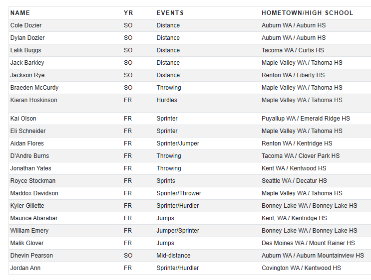 2025-2026 Gator Men's Track & Field Roster
